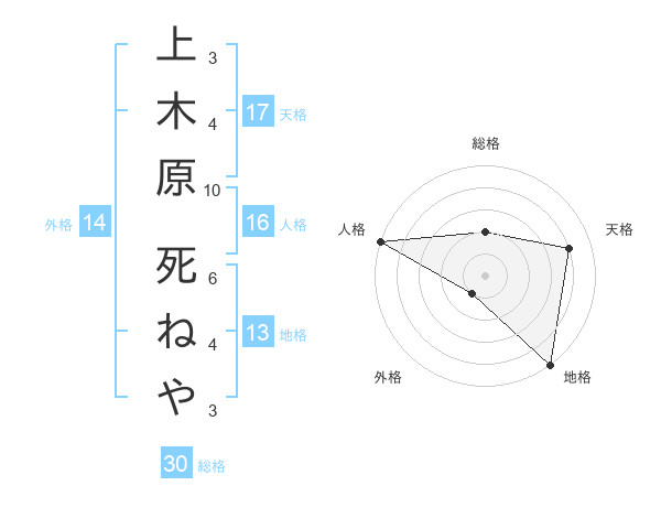 上木原 死ねやさんを姓名の画数から五運を鑑定