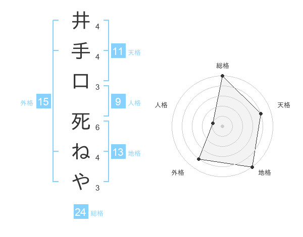 井手口 死ねやさんの総格は24画の5点!