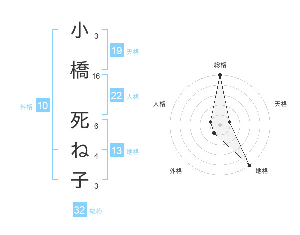 小橋 死ね子さんの総格は32画の5点!