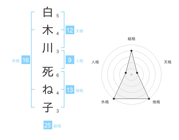 白木川 死ね子さんを姓名の画数から五運を鑑定