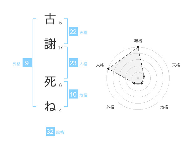古謝 死ねさんの人格は23画の5点!