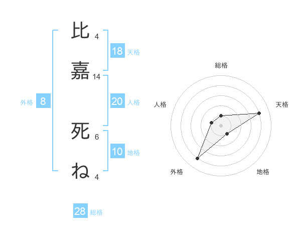 比嘉 死ねさんの総格は28画の1点!