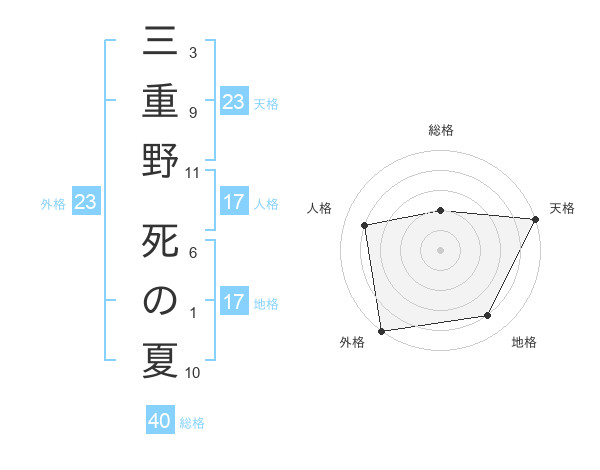 三重野 死の夏さんを姓名の画数から五運を鑑定