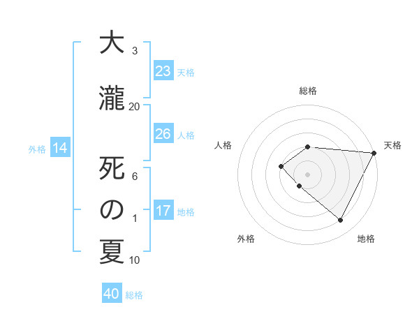 大瀧 死の夏さんを姓名の画数から五運を鑑定