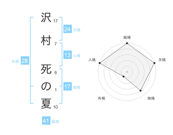 沢村 死の夏さんを姓名の画数から五運を鑑定
