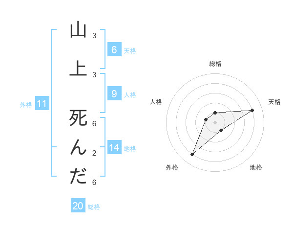 山上 死んださんの総格は20画の1点!