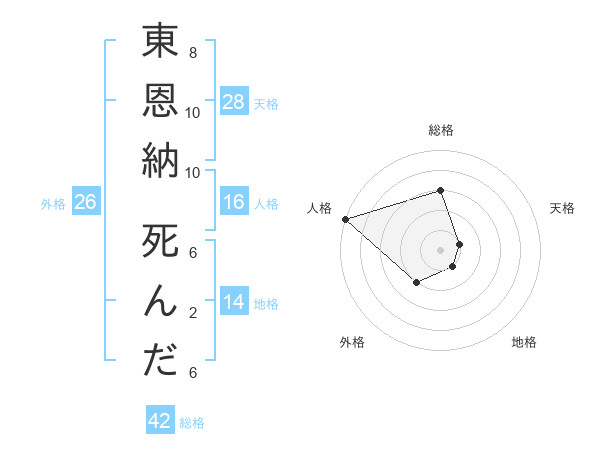 東恩納 死んださんの総格は42画の3点!