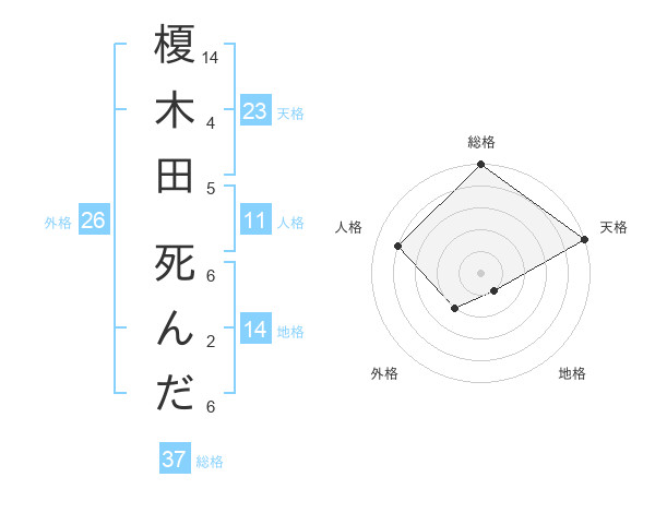 榎木田 死んださんを姓名の画数から五運を鑑定