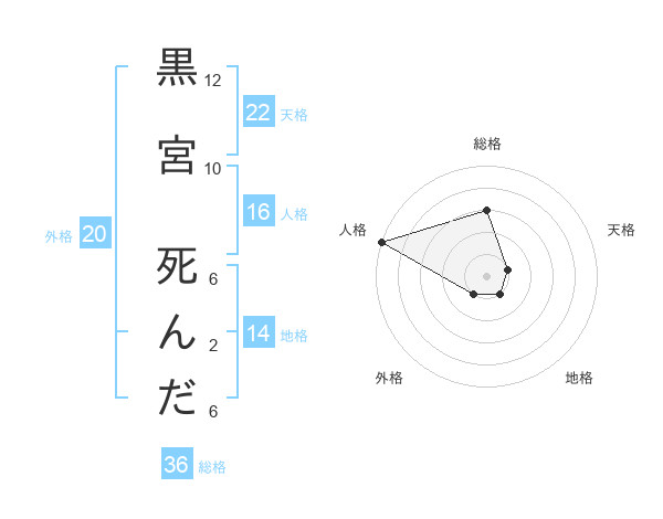 黒宮 死んださんを姓名の画数から五運を鑑定