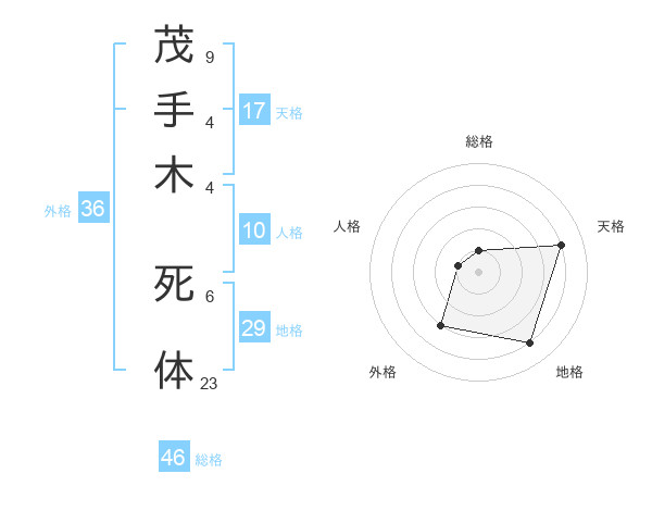 茂手木 死体さんを姓名の画数から五運を鑑定