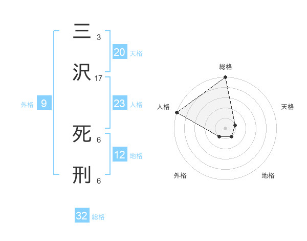 三沢 死刑さんを姓名の画数から五運を鑑定