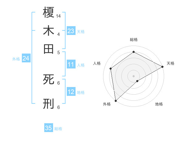 榎木田 死刑さんを姓名の画数から五運を鑑定