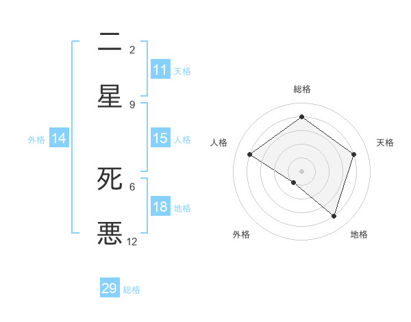 二星 死悪さんの総格は29画の4点!