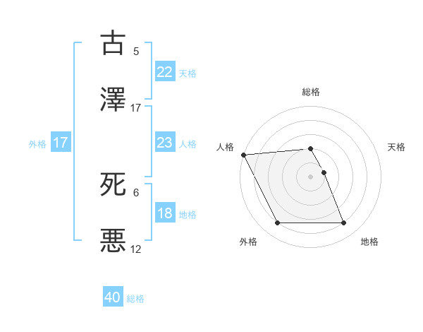 古澤 死悪さんの外格は17画の4点!