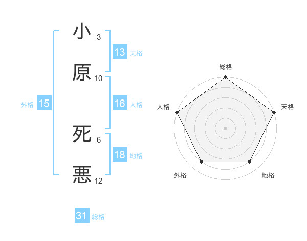 小原 死悪さんの総格は31画の5点!