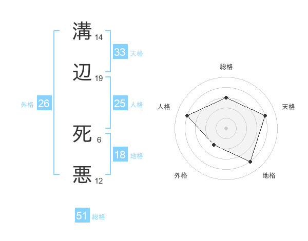 溝辺 死悪さんを姓名の画数から五運を鑑定