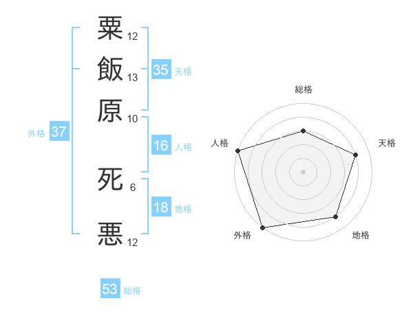 粟飯原 死悪さんの外格は37画の5点!