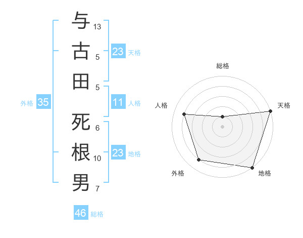 与古田 死根男さんの天格は23画の5点!