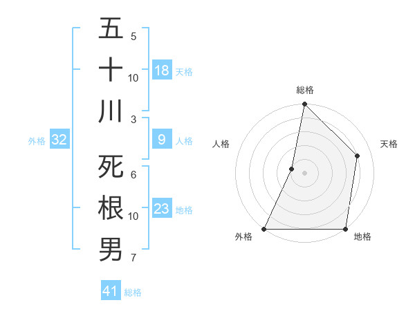 五十川 死根男さんの総格は41画の5点