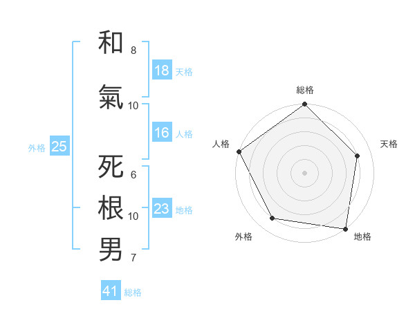 和氣 死根男さんを姓名の画数から五運を鑑定
