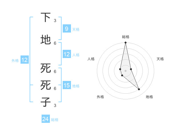 下地 死死子さんの総格は24画の5点!