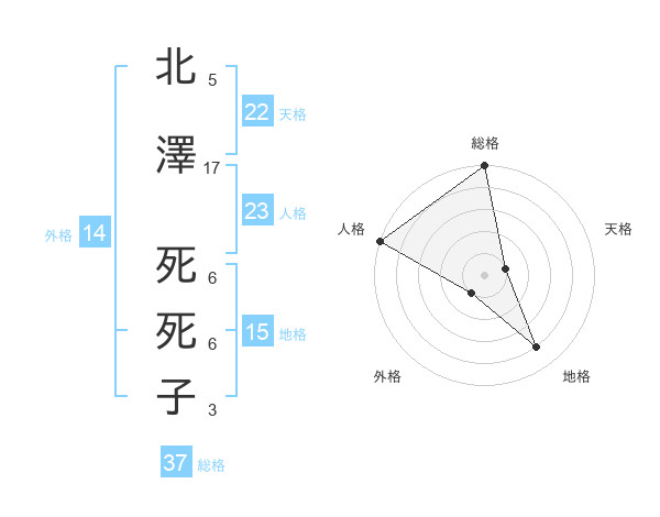 北澤 死死子さんを姓名の画数から五運を鑑定