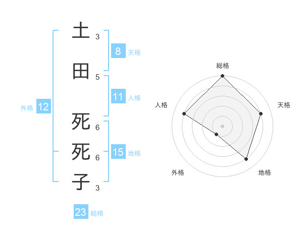 土田 死死子さんの総格は23画の5点!