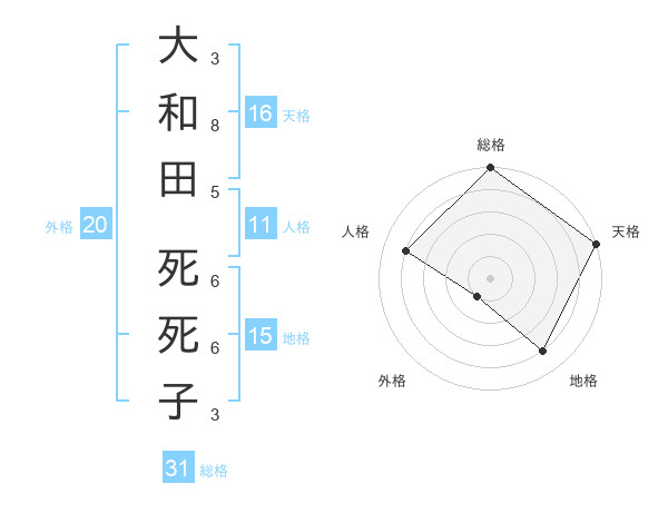 大和田 死死子さんの人格は11画の4点