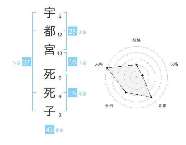 宇都宮 死死子さんを姓名の画数から五運を鑑定