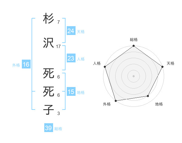 杉沢 死死子さんの天格は24画の5点!