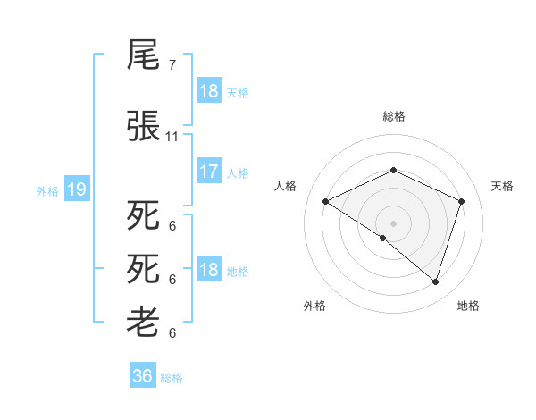 尾張 死死老さんを姓名の画数から五運を鑑定