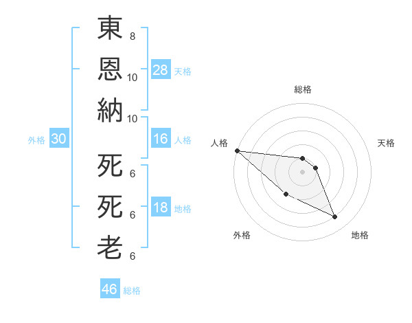 東恩納 死死老さんを姓名の画数から五運を鑑定