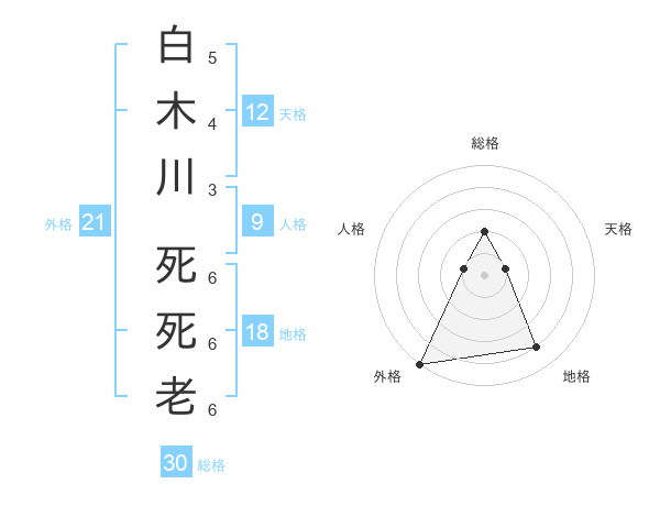 白木川 死死老さんを姓名の画数から五運を鑑定