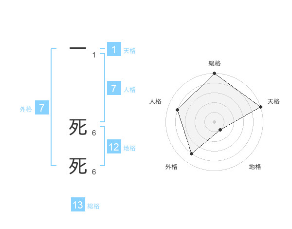 一 死死さんの総格は13画の5点!
