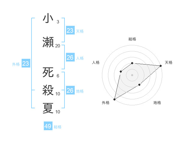 小瀬 死殺夏さんの天格は23画の5点!