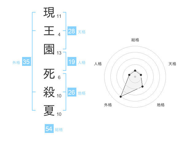 現王園 死殺夏さんを姓名の画数から五運を鑑定