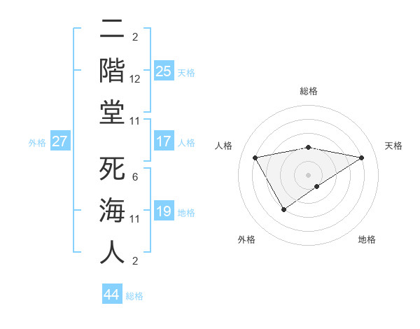 二階堂 死海人さんを姓名の画数から五運を鑑定
