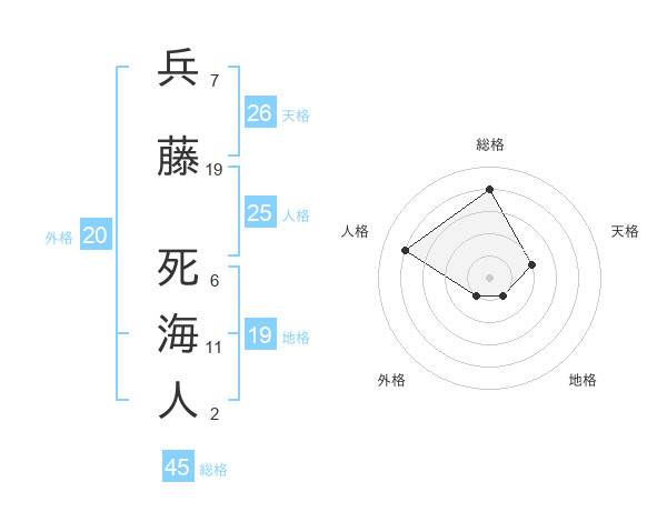 兵藤 死海人さんを姓名の画数から五運を鑑定