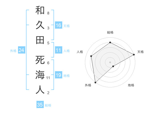 和久田 死海人さんの外格は24画の5点!