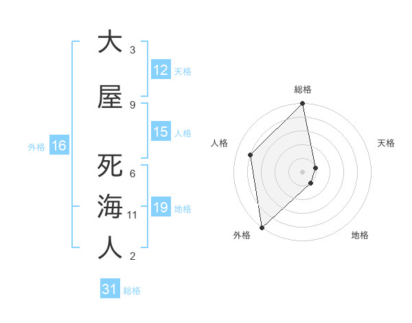 大屋 死海人さんを姓名の画数から五運を鑑定