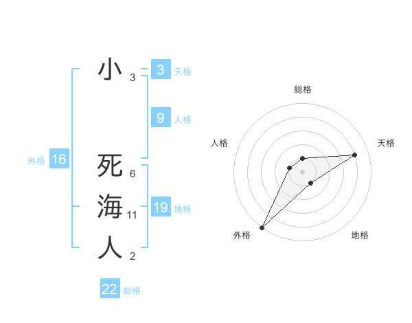 小 死海人さんの総格は22画の1点!