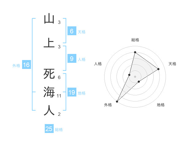 山上 死海人さんの外格は16画の5点!