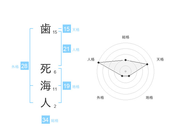 歯 死海人さんの総格は34画の2点!