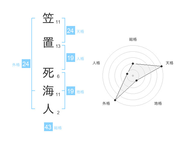 笠置 死海人さんを姓名の画数から五運を鑑定