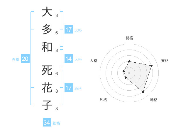 大多和 死花子さんの地格は17画の4点!