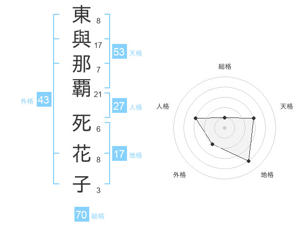 東與那覇 死花子さんを姓名の画数から五運を鑑定
