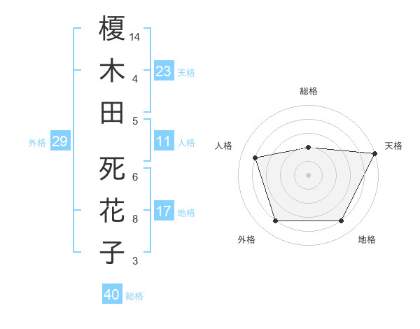 榎木田 死花子さんを姓名の画数から五運を鑑定