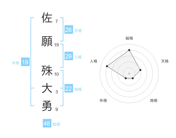 佐願 殊大勇さんを姓名の画数から五運を鑑定