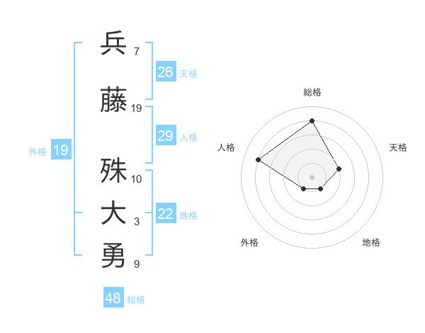 兵藤 殊大勇さんを姓名の画数から五運を鑑定