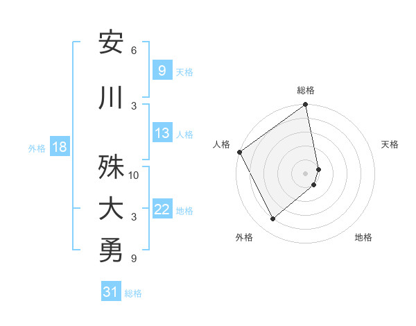 安川 殊大勇さんを姓名の画数から五運を鑑定